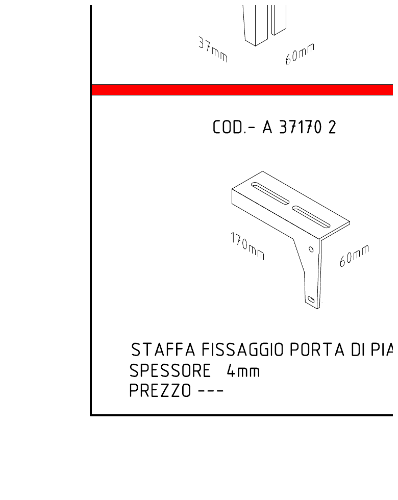 Staffa angolare brevettata per fissaggio porta di piano (superiore), 2 asole. Spessore 4mm, larghezza 37mm, lunghezza 170mm. Ambidestra SX/DX. Brevetto N. 202023000002112.